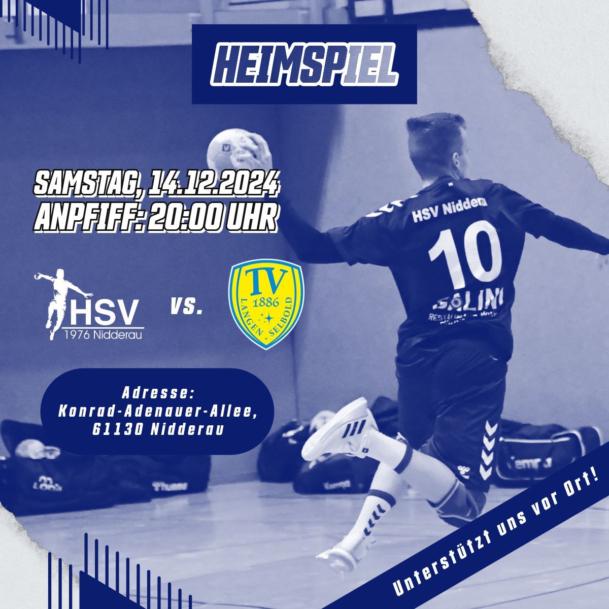 Zum letzten Heimspiel in diesem Jahr erwartet man am Samstag, 14.12.2024 um 20.00 Uhr den noch unbesiegten Tabellenführer aus Langenselbold, der als Aufsteiger bisher eine tolle Saison spielt. In Erwartung eines schönen Handballspiels und einer respektablen Leistung der Nidderauer Handballer freut sich der Verein auf einen regen Zuschauerzuspruch.